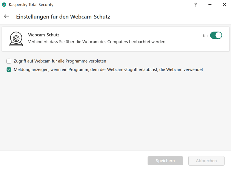 Webcam-Schutz, der unbefugte Zugriffe auf Ihre Webcam verhindert, gibt es erst ab dem Internet Security-Tarif, genauso wie Schutz vor Datensammlung, der den von Ihnen besuchten Websites verbietet, Daten über Ihre Aktivitäten zu speichern.