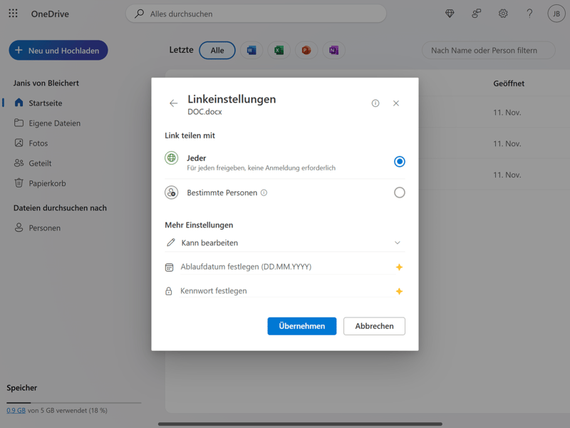 Als Teil von Microsofts Produktivitätsplattform ist OneDrive nahtlos in Office-Programme wie Word, Excel und PowerPoint eingebunden. Sie können Ihre Dateien also direkt in der Cloud speichern und geräteübergreifend bearbeiten. Praktisch ist natürlich auch die Möglichkeit, Dateien mit anderen Nutzern zu teilen und gemeinsam zu editieren.