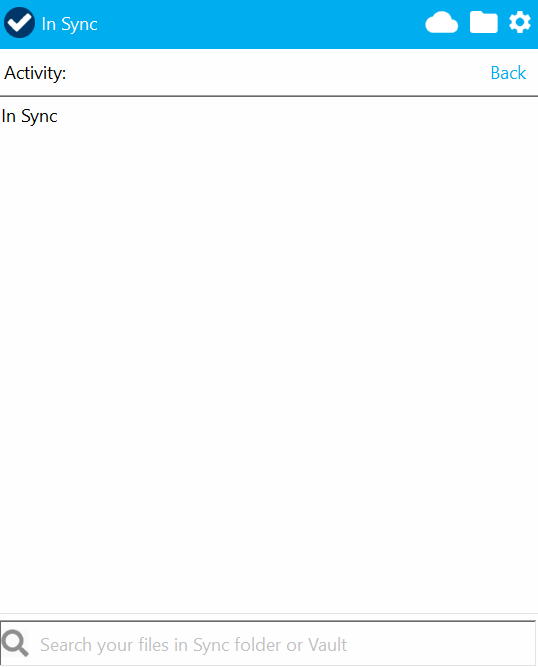Im Files-Bereich, der am Desktop als Sync-Ordner bezeichnet wird, finden Sie alle Dateien in Ihrem Cloud-Speicher, die über eine 2-Wege-Synchronisierung zwischen der Cloud und Ihrem Computer synchronisiert werden.Vault