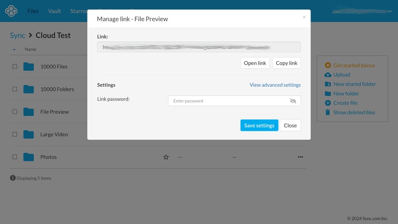 Auch beim Teilen von Dokumenten bietet Sync.com zusätzliche Sicherheitsoptionen wie passwortgeschützte Links, Ablaufdaten für Freigaben und Link-Statistiken. Damit behalten Nutzer:innen jederzeit die Kontrolle darüber, wer auf ihre Daten zugreifen kann.