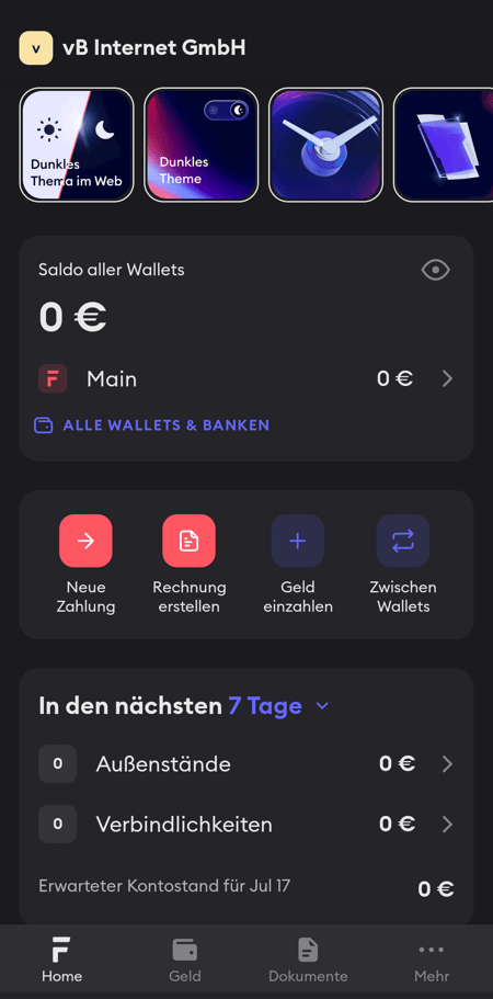 Sie können bis zu 15 Unterkonten („Wallets“) anlegen. Jedes davon hat eine eigene IBAN, kann also unabhängig vom Hauptkonto genutzt werden.Eingebaute Rechnungs- und Buchhaltungs-Tools