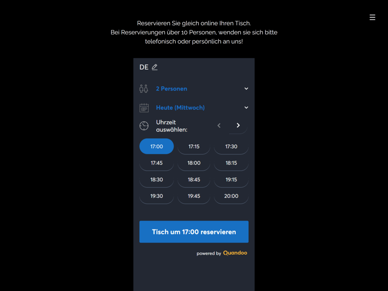 Natürlich können Sie ein simples Reservierungsformular vorbereiten, in dem Gäste ihre Daten und die gewünschte Zeit mitsamt Gästeanzahl eintragen. Noch einfach geht es mit Online-Reservierungssystemen, die stets wissen, wann wie viele Tische wie lange frei sind.