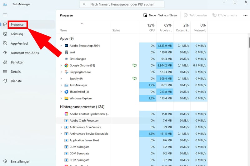 Schritt 2: Bleiben Sie im Reiter „Prozesse“.