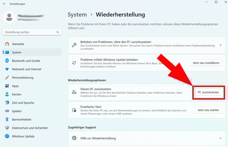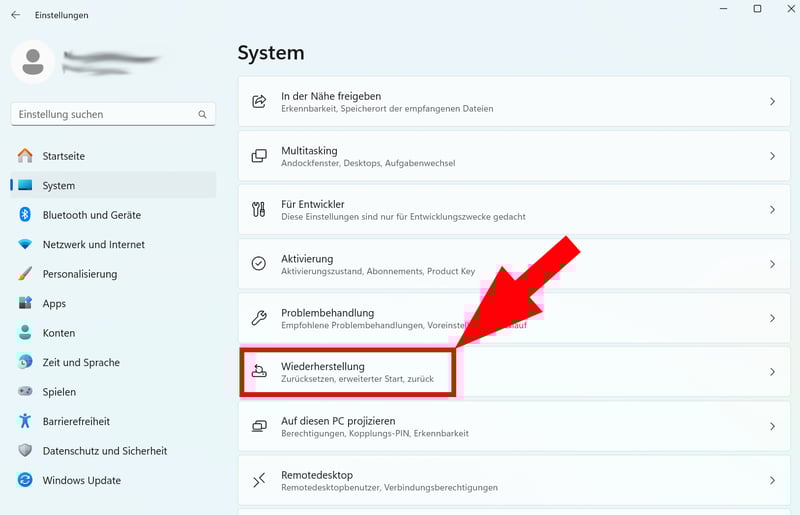 Öffnen Sie die Wiederherstellung in den Windows-Einstellungen.