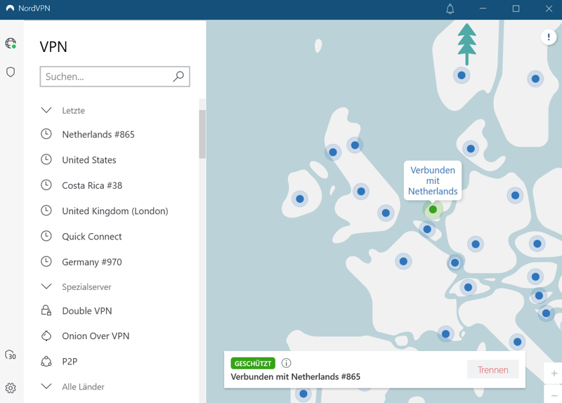 Unser Testsieger NordVPN ist die unangefochtene Nr. 1 im VPN-Speedtest, punktet aber mit weit mehr als guten Geschwindigkeiten: Die Anwendungen sind benutzerfreundlich, die Sicherheitsstandards hoch und das Server-Netzwerk ist beachtlich. Der Dienst mit Sitz in Panama bietet deshalb das aus unserer Sicht beste VPN-Gesamtpaket auf dem Markt, und das zu einem relativ erschwinglichen Preis.