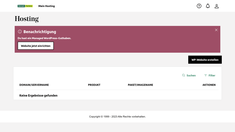 Die Verwaltungsoberfläche von DomainFactory ist im Vergleich zu den modernen Dashboards anderer WordPress Hoster nicht sonderlich intuitiv.Kein Multisite