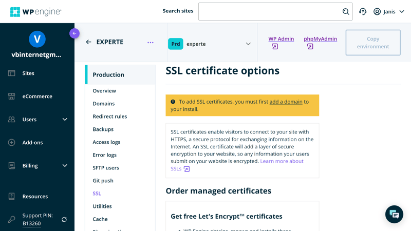 WP Engine stellt kostenlose SSL-Zertifikate von Let's Encrypt zur Verfügung.