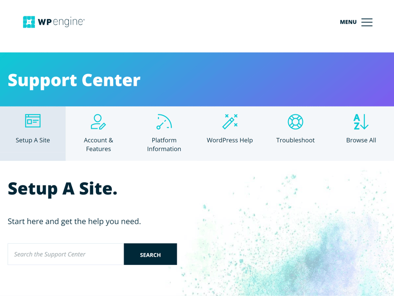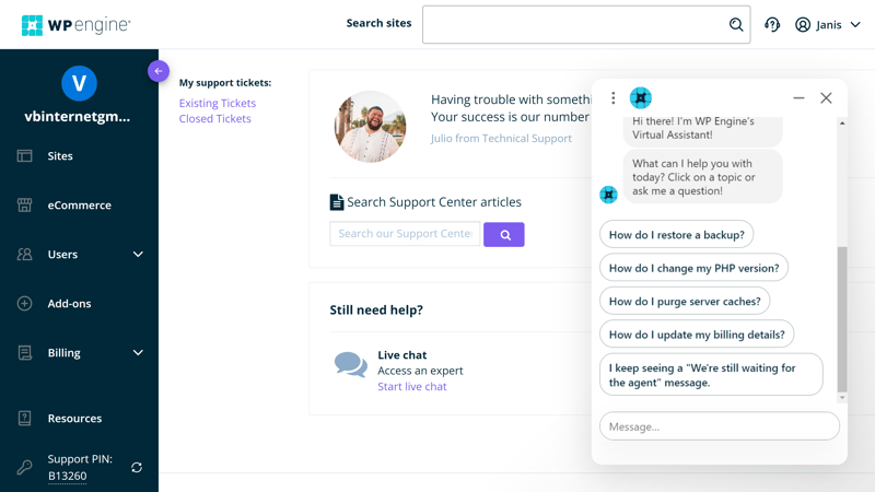 Das Support-Center von WP Engine.