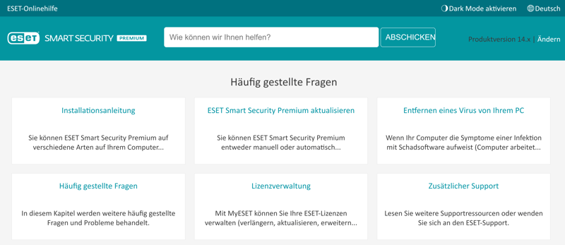 Das Hilfezentrum von ESET ist umfangreich