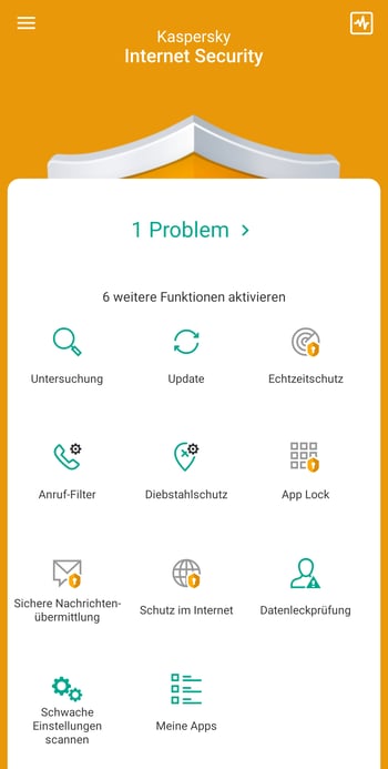 Wenn es Probleme gibt, informiert Sie Kaspersky direkt im Startfenster