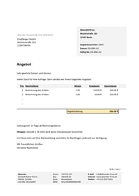 Mit unserer Angebotsvorlage erstellen Sie blitzschnell individuelle Angebote in allen gängigen Formaten, wahlweise mit oder ohne Umsatzsteuer.