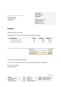 Hier sind die wichtigsten Angaben für Angebote, die natürlich auch auf unserer Vorlage vorhanden sind, im Überblick: