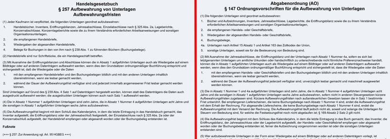 Die Aufbewahrungspflicht ist im Handelsgesetzbuch (HGB) und der Abgabenordnung (AO) geregelt.