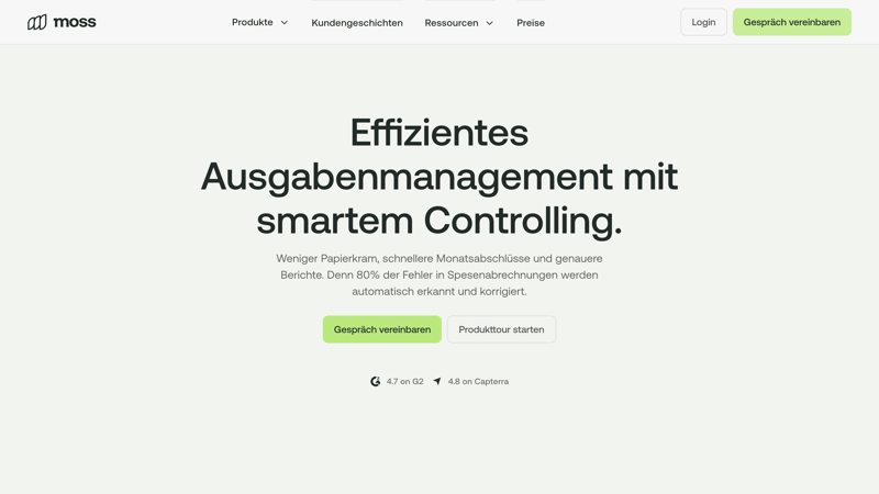 Moss ist ein Ausgabenmanagement-Tool aus Berlin, das genau wie Pleo einen starken Fokus auf die Verwaltung dezentraler Ausgaben mit intelligenten Firmenkarten legt.