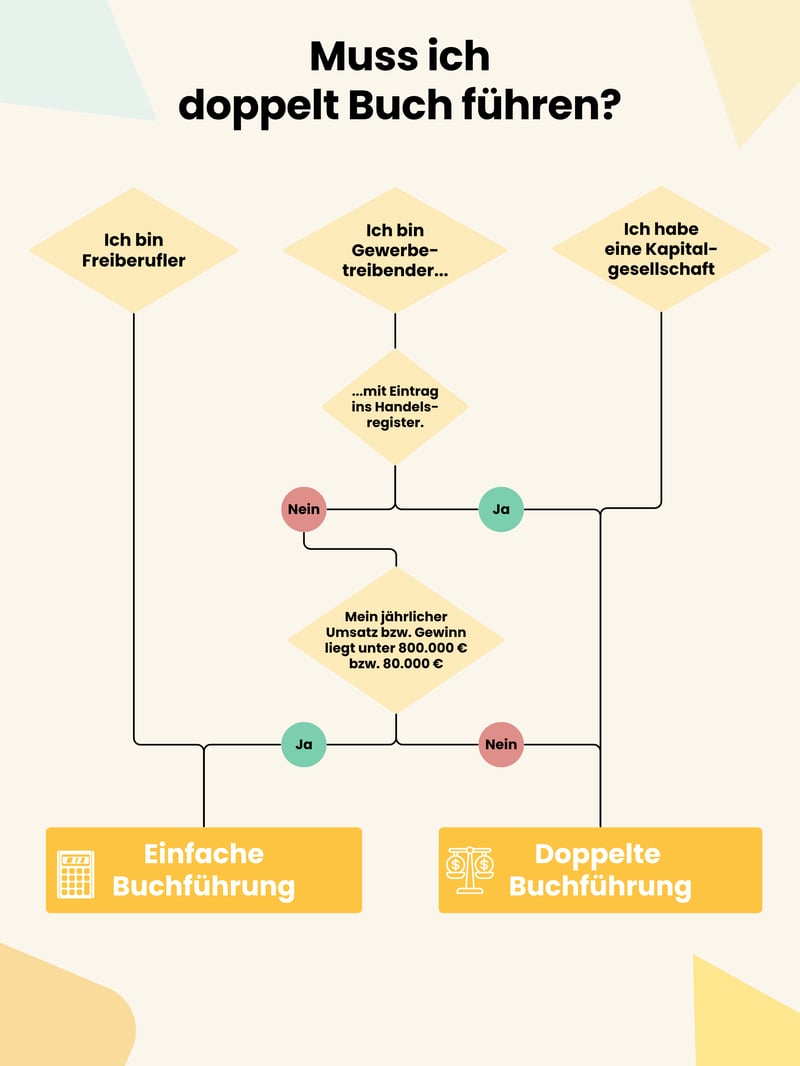 Ob Sie zur doppelten Buchführung verpflichtet sind, hängt von mehreren Faktoren ab: