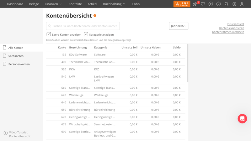 In Buchhaltungs-Tools sind die Standardkontenrahmen bereits hinterlegt.