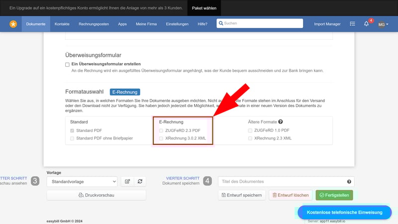 Aktivieren Sie die E-Rechnungs-Funktion.