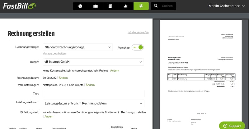FastBill: Schnelle XRechnungen (ohne E-Mail-Versand)