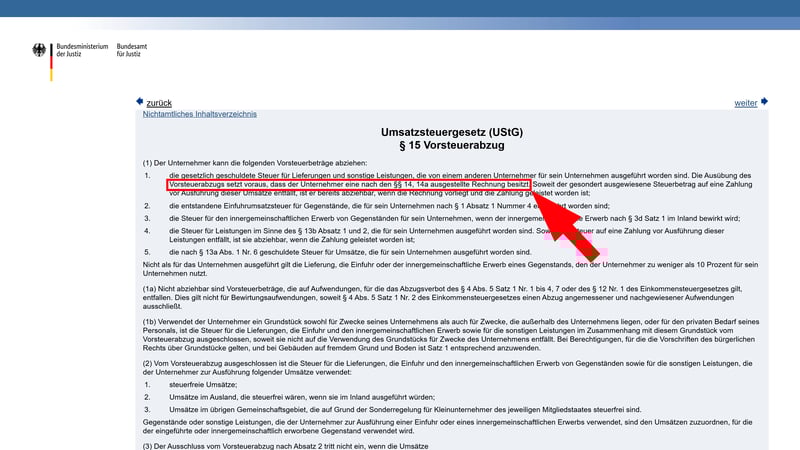 Der Vorsteuerabzug ist laut UStG nur mit einer „richtigen“ Rechnung möglich.