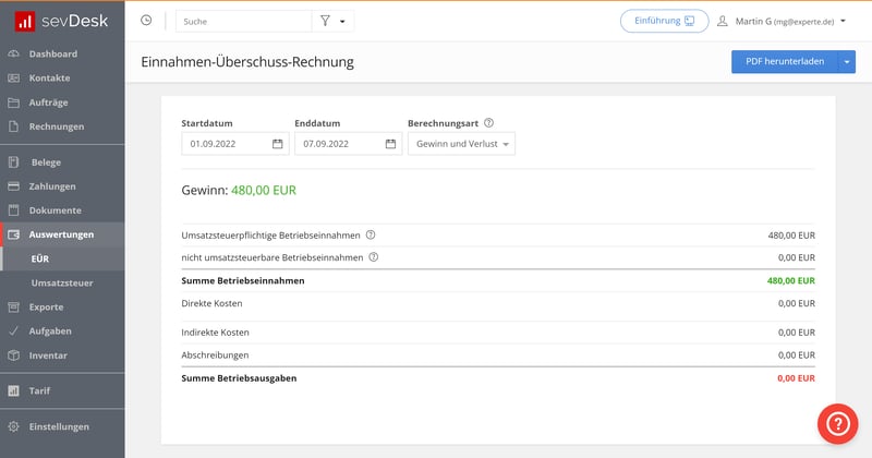 Auch sevDesk unterstützt die Erstellung einer GuV.