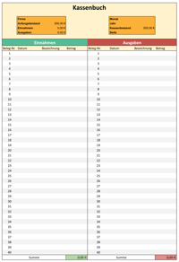 Kostenlose Kassenbuch-Vorlage für Excel, Google Sheets, PDF