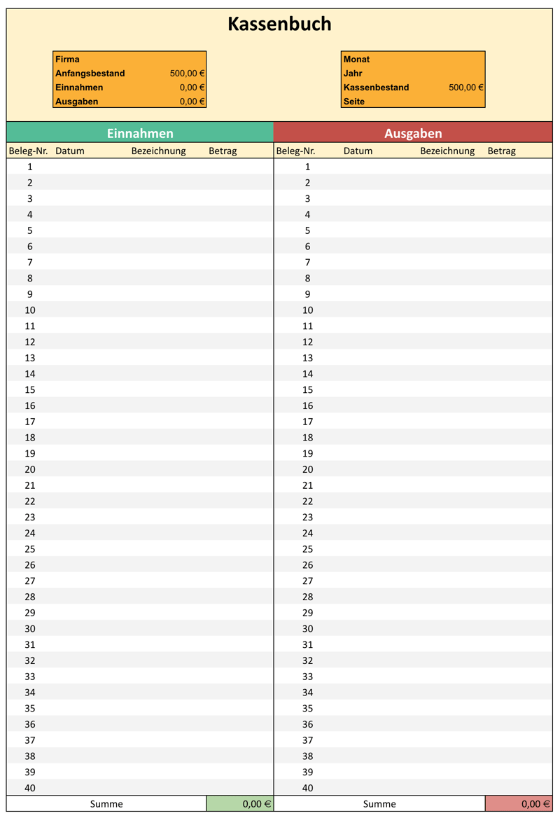 Das heißt aber nicht, dass Sie keine Vorlage nutzen können. Es ist nur eben nicht damit getan, dass Sie die Bargeldbewegungen eintragen und abspeichern: