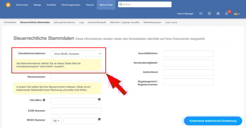 Wenn beide Bedingungen erfüllt sind und Sie sich nicht freiwillig für die Regelbesteuerung entscheiden, werden Sie als Kleinunternehmer behandelt und sind von der Umsatzsteuer befreit.