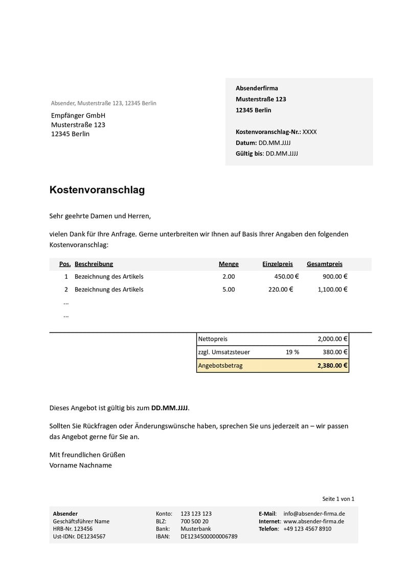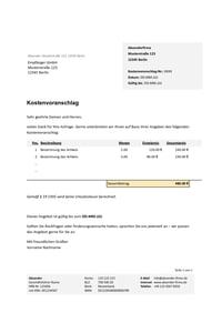 Kostenvoranschlag Muster: Kostenlose Vorlage zum Ausfüllen