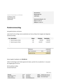 Mit unseren Vorlagen erstellen Sie in wenigen Minuten einen übersichtlichen und professionellen Kostenvoranschlag für Ihre Kunden.