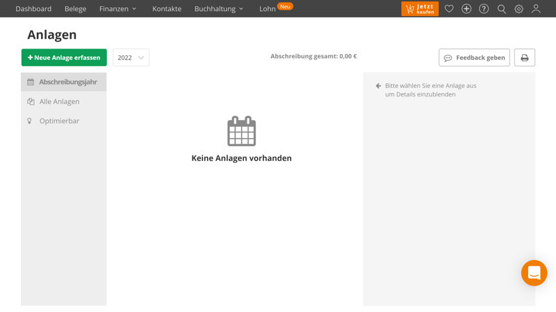 Anlagenbuchhaltung: Mit lexoffice können Sie (wiederum ab Tarif L) auch Ihre Anlagegüter verwalten und abschreiben. Sie finden die Funktion unter Buchhaltung > Anlage.