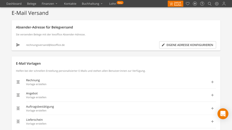 Sie können Ihre eigene E-Mail-Domain einrichten, um über lexoffice E-Mails von einer benutzerdefinierten Adresse zu versenden.