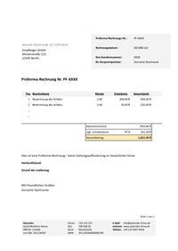 Damit das Dokument nicht versehentlich als reguläre Rechnung behandelt wird, sollten Sie die Proforma-Rechnung bereits im Betreff oder der Überschrift eindeutig als solche kennzeichnen. - 2.