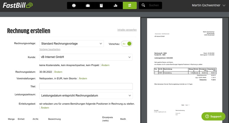 Mit der Rechnungsmaske von FastBill ist die Erstellung von Rechnungen ein Klacks.