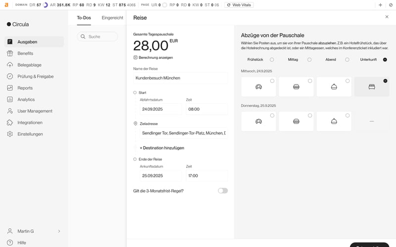 Mit einem Ausgabenmanagement-Tool wie Circula können Sie die Reisekostenabrechnung automatisieren.