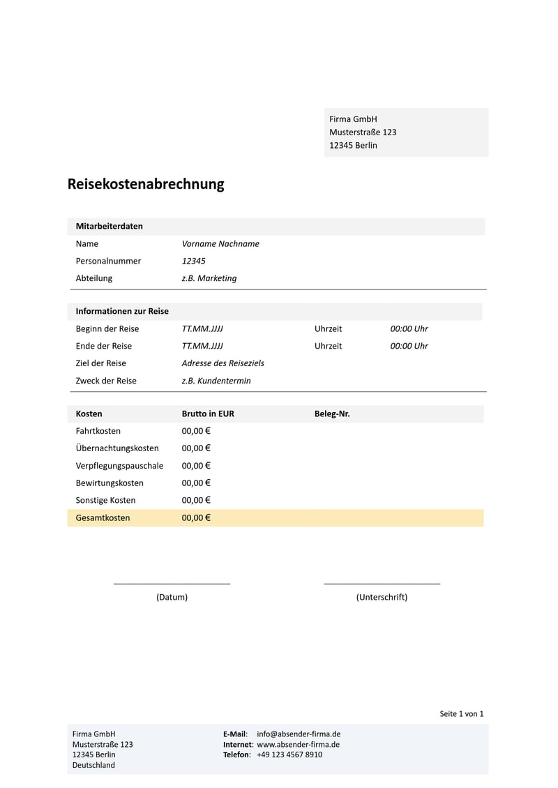 Reisekostenabrechnung Vorlage: Kostenlose Vorlage zur Abrechnung von Dienstreisen