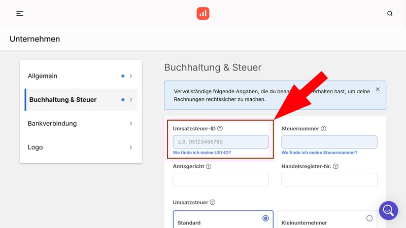 Hinterlegen Sie Ihre USt-ID in Ihrem Rechnungsprogramm.