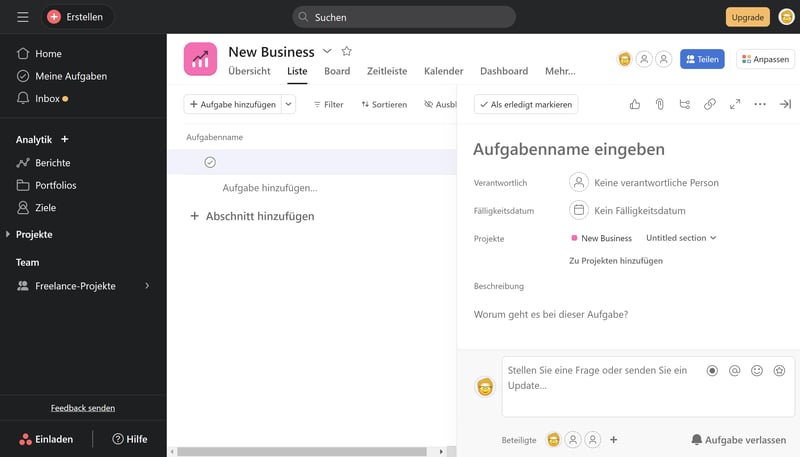Wenn Sie freiberuflich oder selbstständig arbeiten, sind Sie CEO, Kundenbetreuer, Projekt- und Vertriebsleiter in einem. Bei so vielen Rollen, die gleichzeitig ausgeführt werden müssen, können die Dinge schnell chaotisch werden. Projektmanagement-Software wie Asana oder Trello kann Ordnung in diesen Geschäftsalltag bringen und Ihren Projekten eine klare Struktur verleihen.