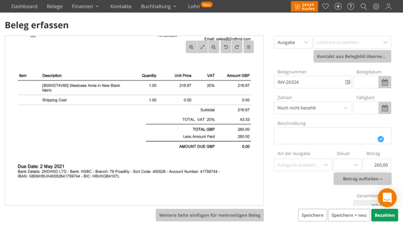 Transaktionen, sowohl eingehend als auch ausgehend, nachvollziehen und mit Belegen abgleichen