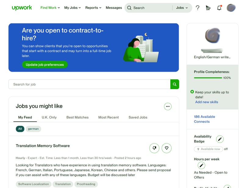 Auf Freelancer-Portalen wie Upwork können Sie Freelancer anheuern oder Ihre eigenen Dienste zur Verfügung stellen.