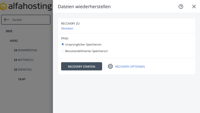 Bei einem Datenverlust können Sie Ihre Backups mit einer entsprechenden Funktion wiederherstellen und eine gewünschte Version herunterladen.