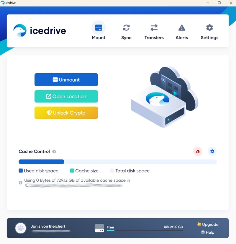 Icedrive folgt dem Zero-Knowledge-Prinzip: Die Entschlüsselungsschlüssel liegen ausschließlich bei Ihnen, nicht einmal Icedrive selbst hat Zugriff.Praktische „Mount“-Funktion
