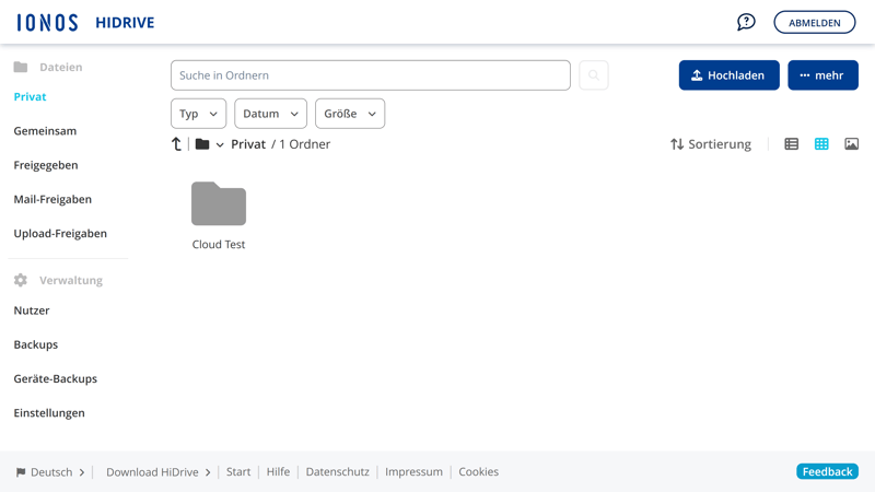 In unserem Performance-Test machte IONOS HiDrive keine gute Figur: Die Upload- und Download-Geschwindigkeiten lagen weit hinter der Konkurrenz.Veraltete Benutzeroberfläche