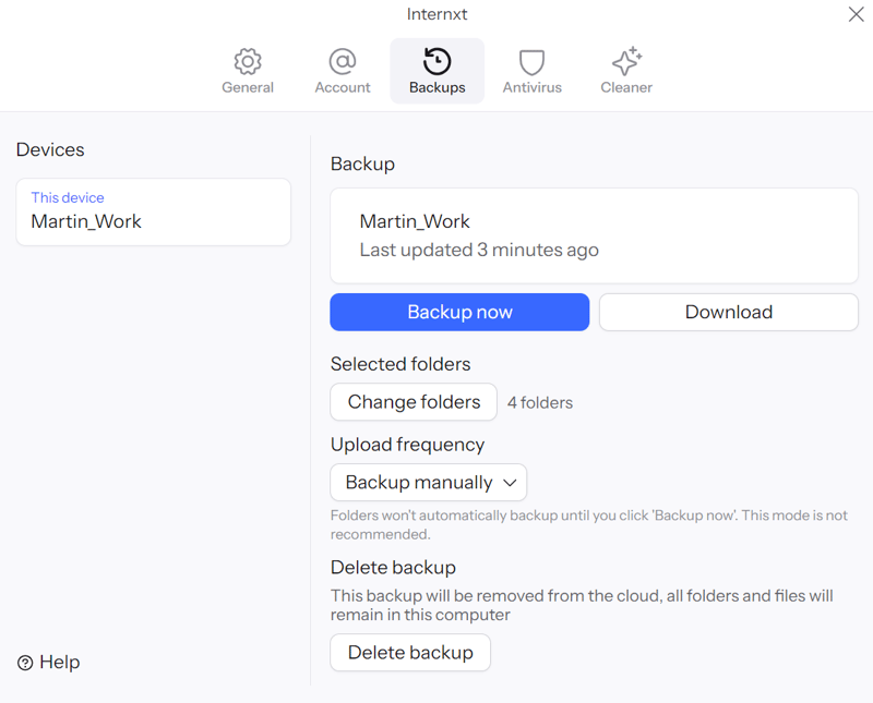 Internxt synchronisiert aber nicht nur mit angezogener Handbremse, sondern lässt Ihnen dabei auch kaum Spielraum, die Synchronisierung anzupassen.