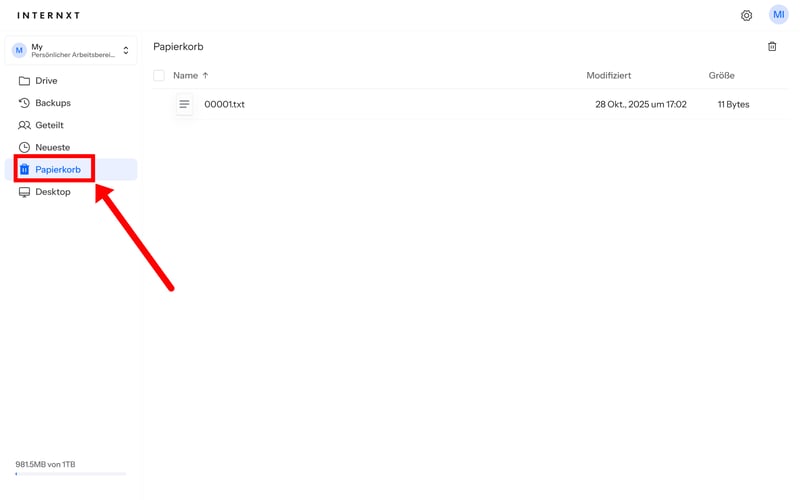Gelöschte Dateien landen vorübergehend im Papierkorb.