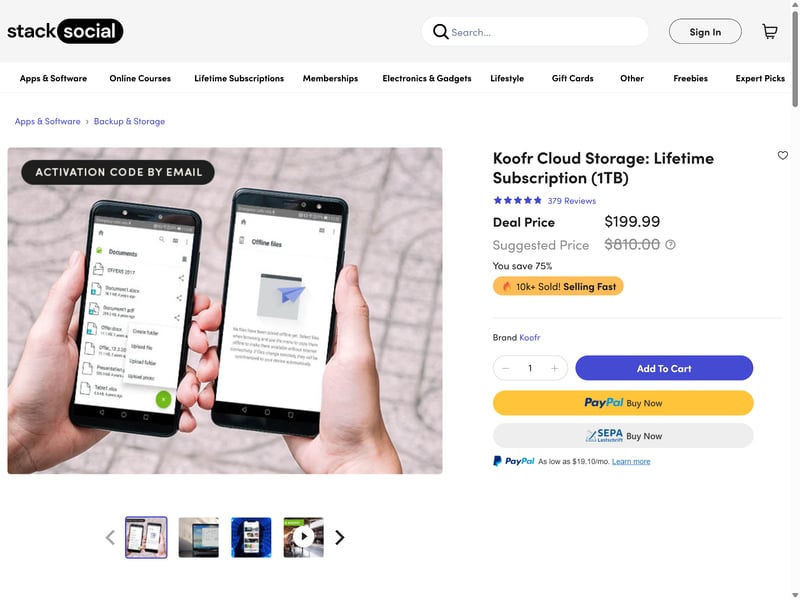 Lifetime-Tarife gibt es nicht direkt von Koofr, sondern bei der Reseller-Plattform StackSocial. Dort können Sie aktuell für 199,99 USD Speicher auf Lebenszeit buchen.