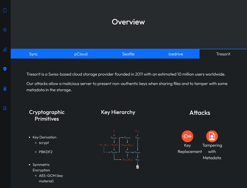 2024 untersuchten Forscher der ETH Zürich zehn Ende-zu-Ende-verschlüsselte Cloud-Dienste auf mögliche Schwachstellen. Tresorit schnitt in diesem Vergleich besser ab als die Konkurrenz, ganz ohne Kritik blieb der Anbieter aber nicht.