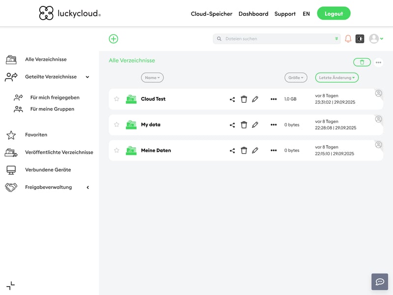 Das Web-Dashboard von luckycloud.