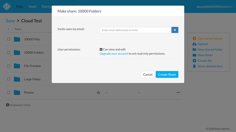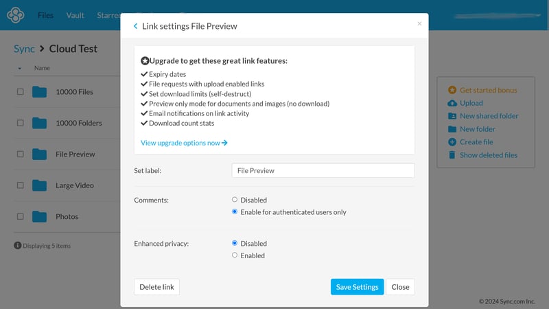 Sync.com bietet dafür relativ flexible Einstellungsmöglichkeiten, wobei die genauen Optionen von der Oberfläche abhängig sind.