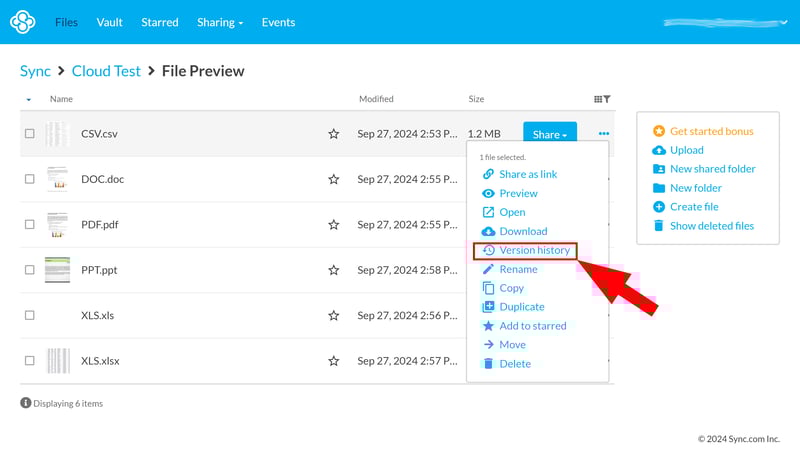 Sync.com schützt Sie auch vor Datenverlusten. Sie können alte Versionen Ihrer Dateien einsehen und mit wenigen Klicks wiederherstellen. Je nach Tarif geht die Dateiversionierung 180 bis 365 Tage zurück – im Gratis-Tarif sind es immerhin 30 Tage.