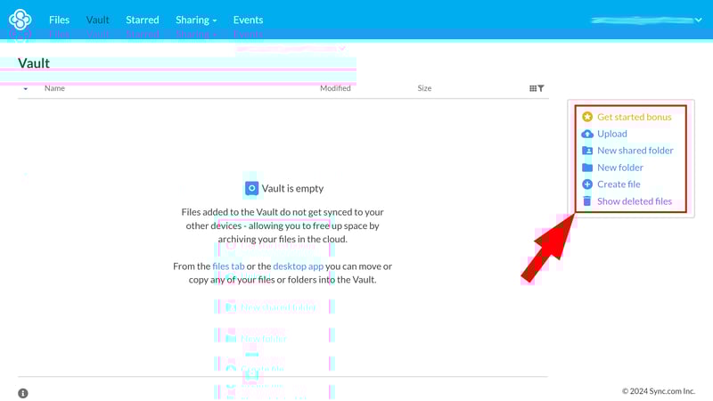 Beim Vault handelt es sich um einen „Cloud-only“-Speicher, der nicht automatisch synchronisiert wird. Ordner und Dateien, die sich darin befinden, werden also nur in der Cloud gespeichert und sind vom Computer aus nicht erreichbar. Um sie zu öffnen und herunterzuladen, müssen Sie den Vault in der Web-Anwendung oder der Smartphone-App aufrufen.